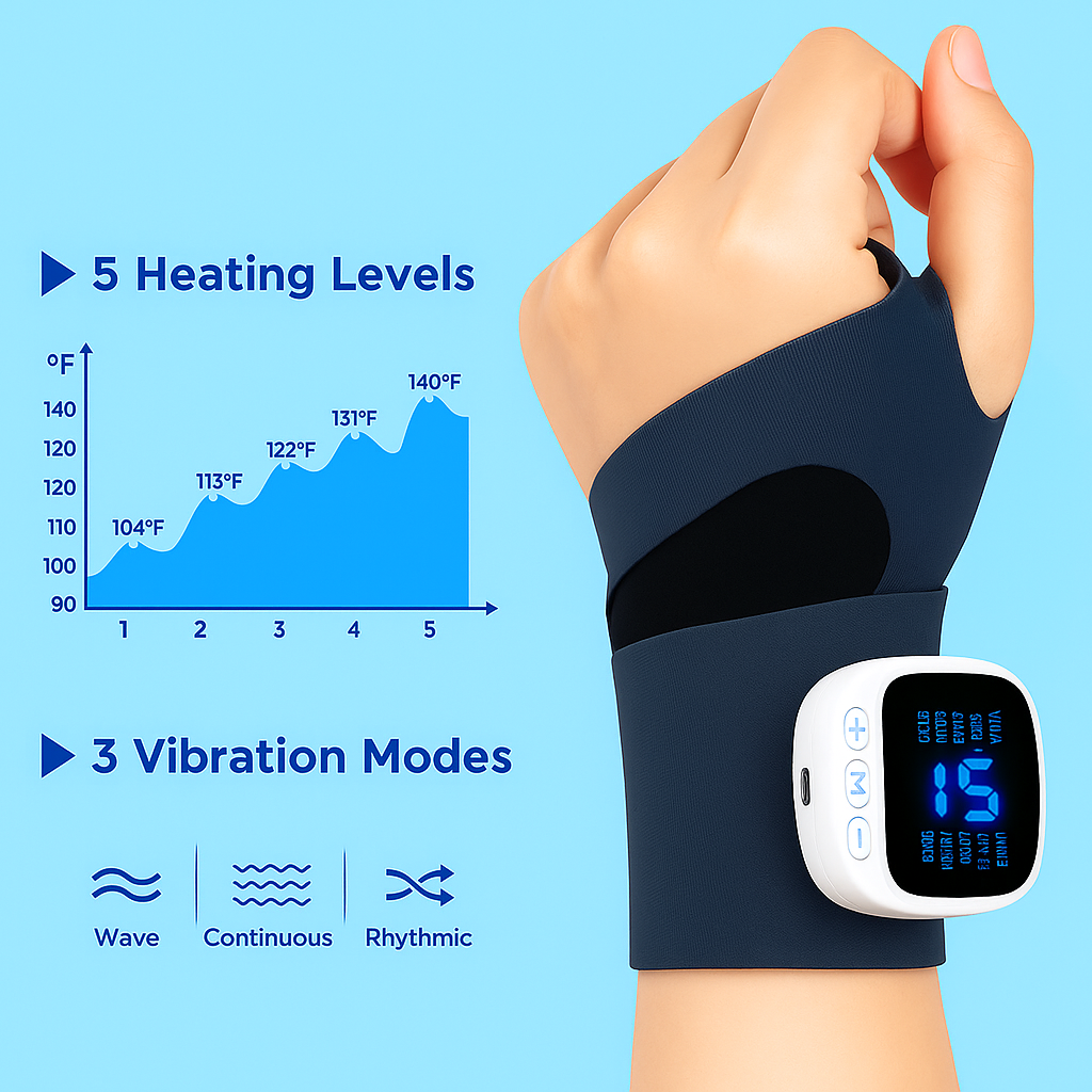 Our wrist massager combines advanced air compression, heat therapy, and rhythmic vibration to deliver deep relief — not just surface relaxation. It’s engineered to target pressure points and improve circulation, giving real results you can feel.