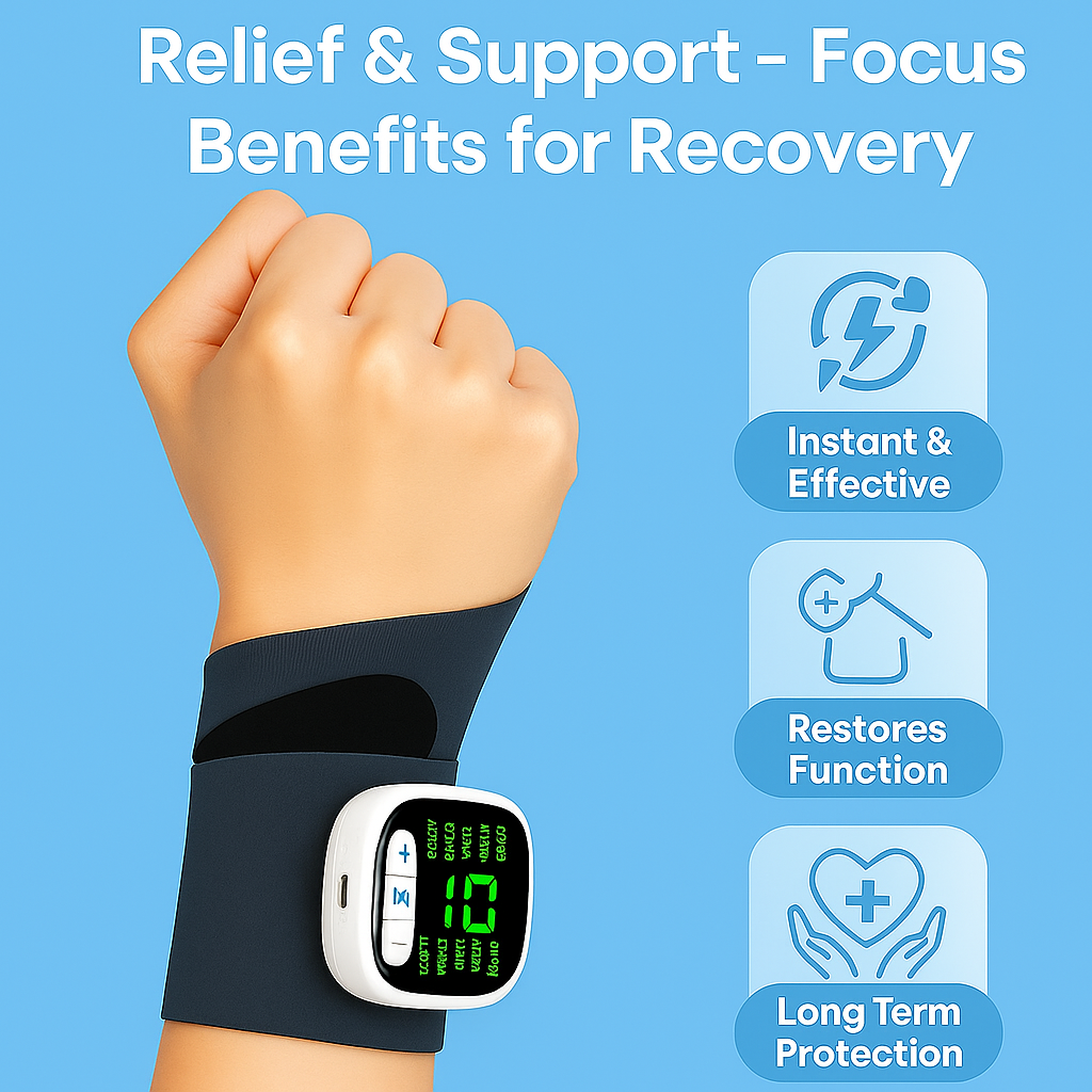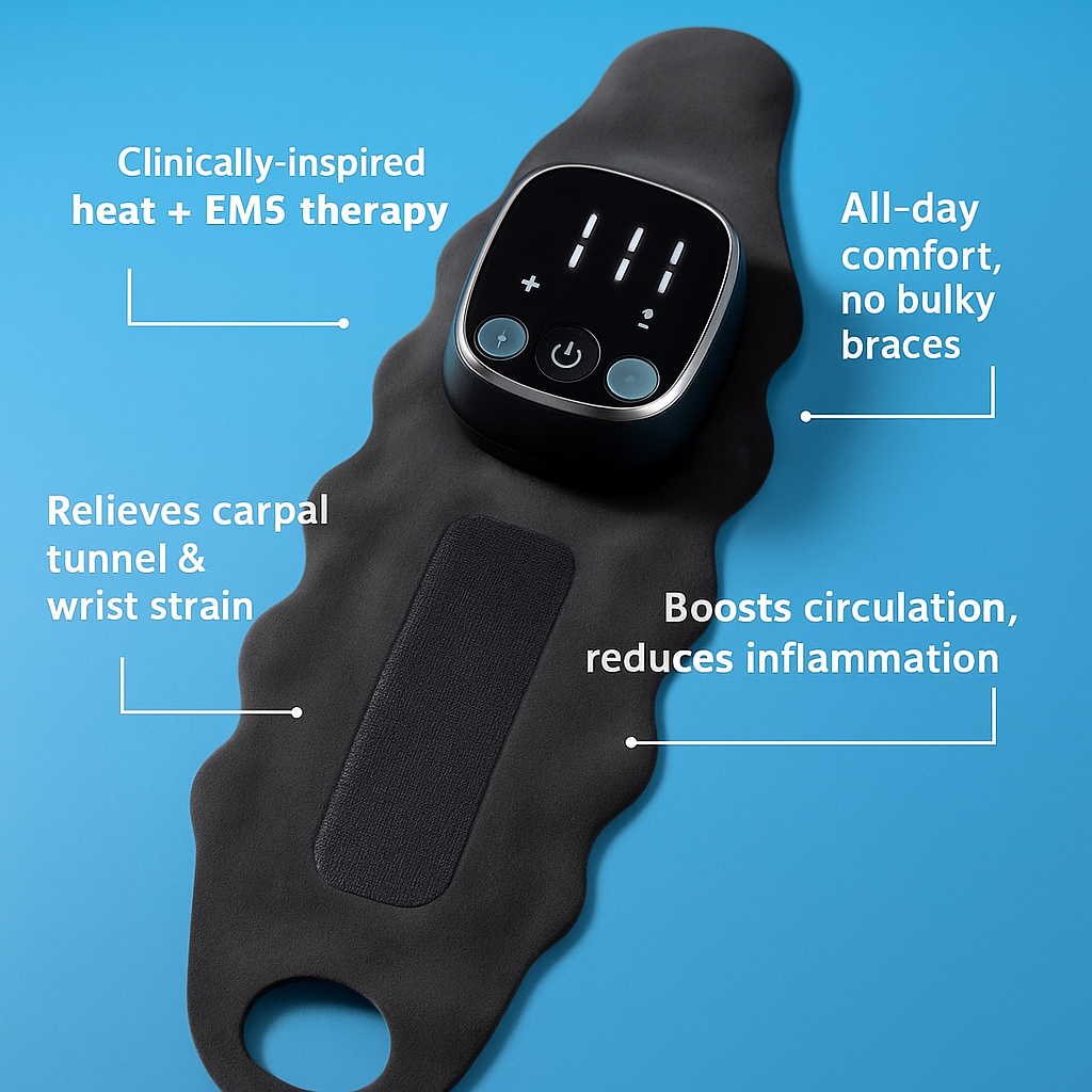 Relieves wrist pain fast with smart AI pressure.