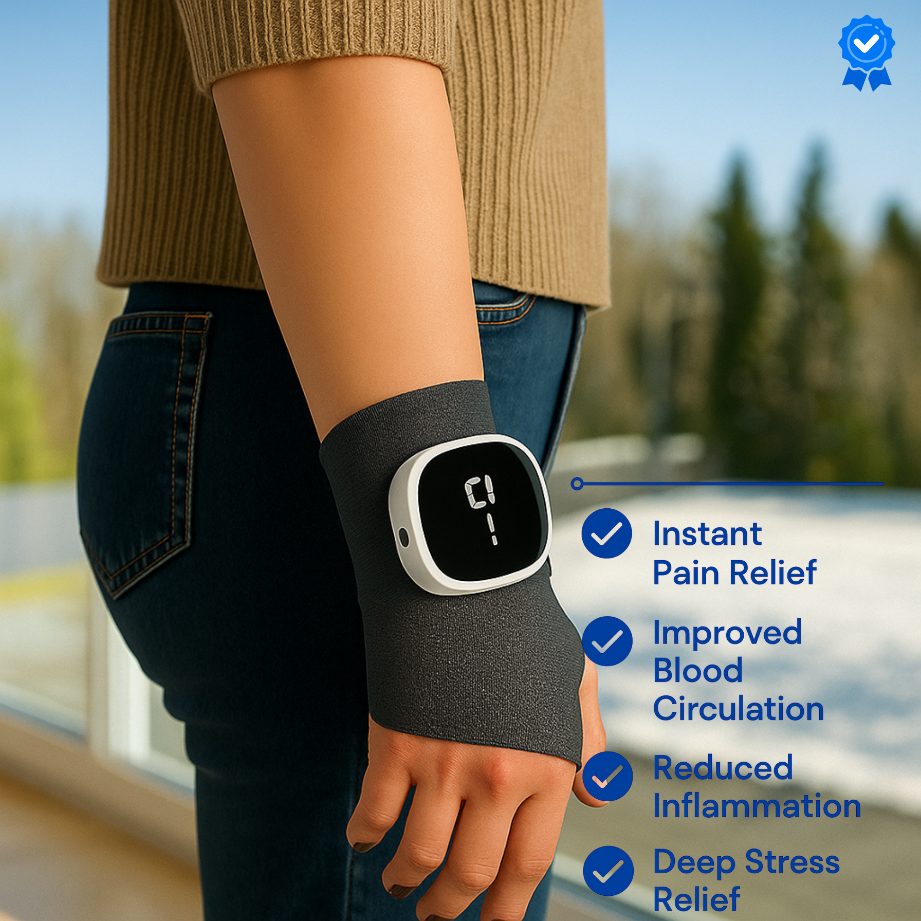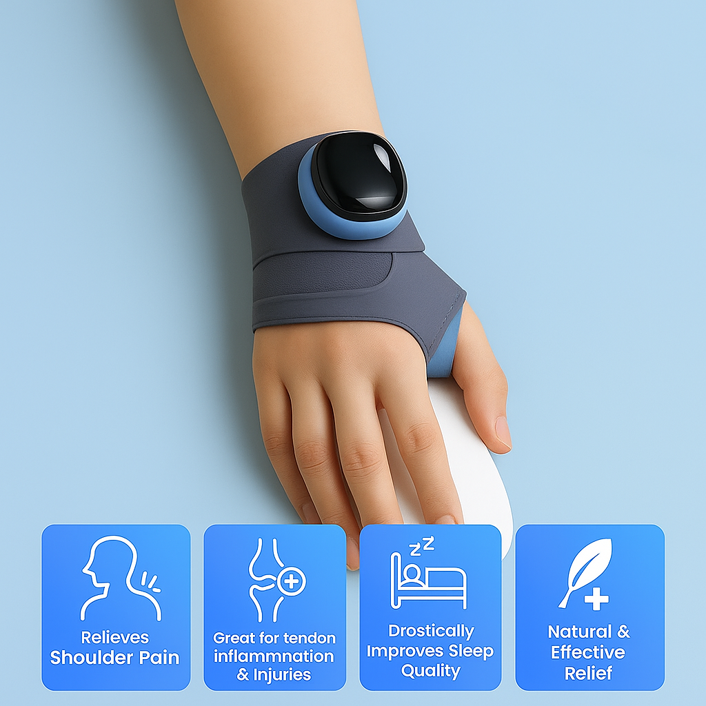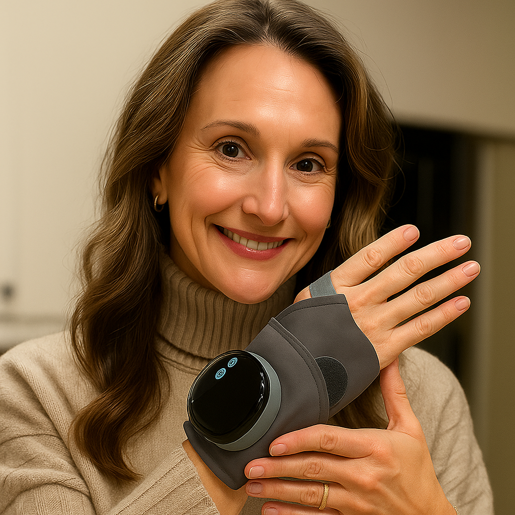 Sofia R. June 2025Verified Buyer⭐Relief That Actually Works!I was skeptical at first, but this little device surprised me. After just a few days, my wrist pain from typing all day dropped drastically. It feels like a warm hand gently squeezing away the tension. Totally worth it.